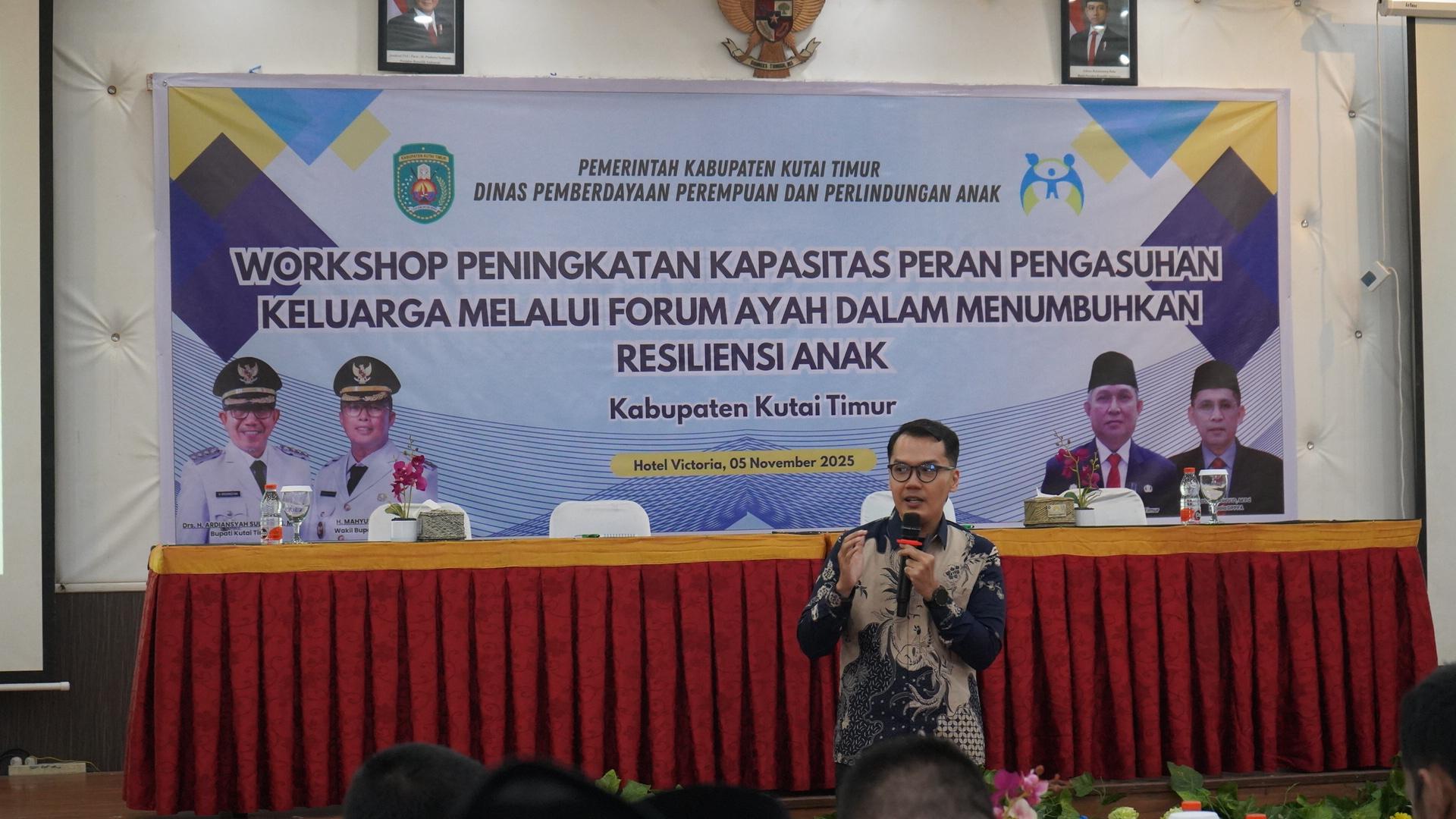 Bebaya.id, Kutai Timur – Dinas Pemberdayaan Perempuan dan Perlindungan Anak (DPPPA) Kabupaten Kutai Timur (Kutim) terus berupaya memperkuat ketahanan keluarga melalui peningkatan peran aktif para ayah dalam pengasuhan anak. Upaya tersebut diwujudkan lewat Workshop Peningkatan Kapasitas Peran Pengasuhan Keluarga melalui Forum Ayah dalam Menumbuhkan Resiliensi Anak, yang digelar di D’Lounge Hotel Royal Victoria, Rabu–Kamis (5–6/11/2025).